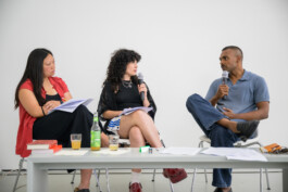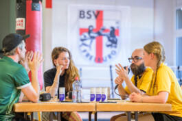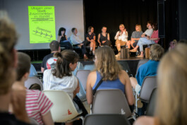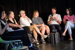 Cem A., Crit Club: What is more important, network or artwork?, Panel-Performance, 28.06.2025, Photo: Marc Doradzillo © Biennale für Freiburg 3