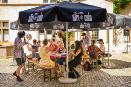 Agnes Essonti Luque, Joy is a Shared Table, Food-Performance, 26.07.2025, Photo: Marc Doradzillo © Biennale für Freiburg 3