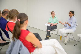 Noha Mokhtar mit Prof. Dr. Birgit Hopfener, Artist Talk, Photo: Marc Doradzillo © Biennale für Freiburg 3